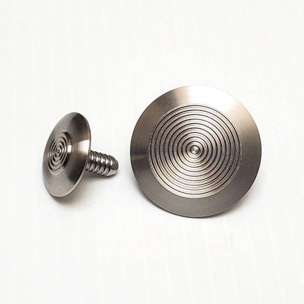 Dimensions (small): 7/8″ diameter x 3/16″ high dome, 1/2″ long x 3/16″ diameter stud